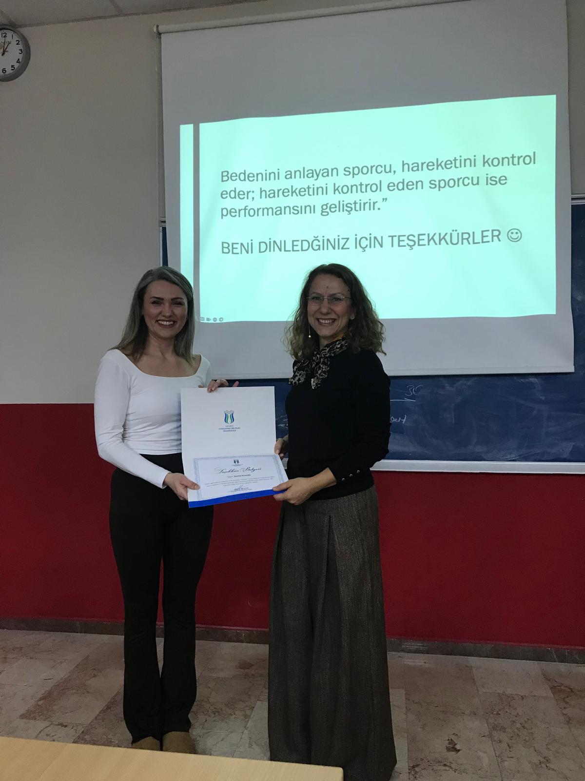 Etkinlik kapsamında teorik bilgilerin yanı sıra uygulamaya dönük örneklere de yer verilirken, pilates egzersizlerinin performans, denge ve postür kontrolü üzerindeki etkileri vurgulandı. Öğrencilerin ilgiyle takip ettiği etkinlik, alanla ilgili farkındalığın artırılmasına ve güncel yaklaşımların paylaşılmasına katkı sağladı.
