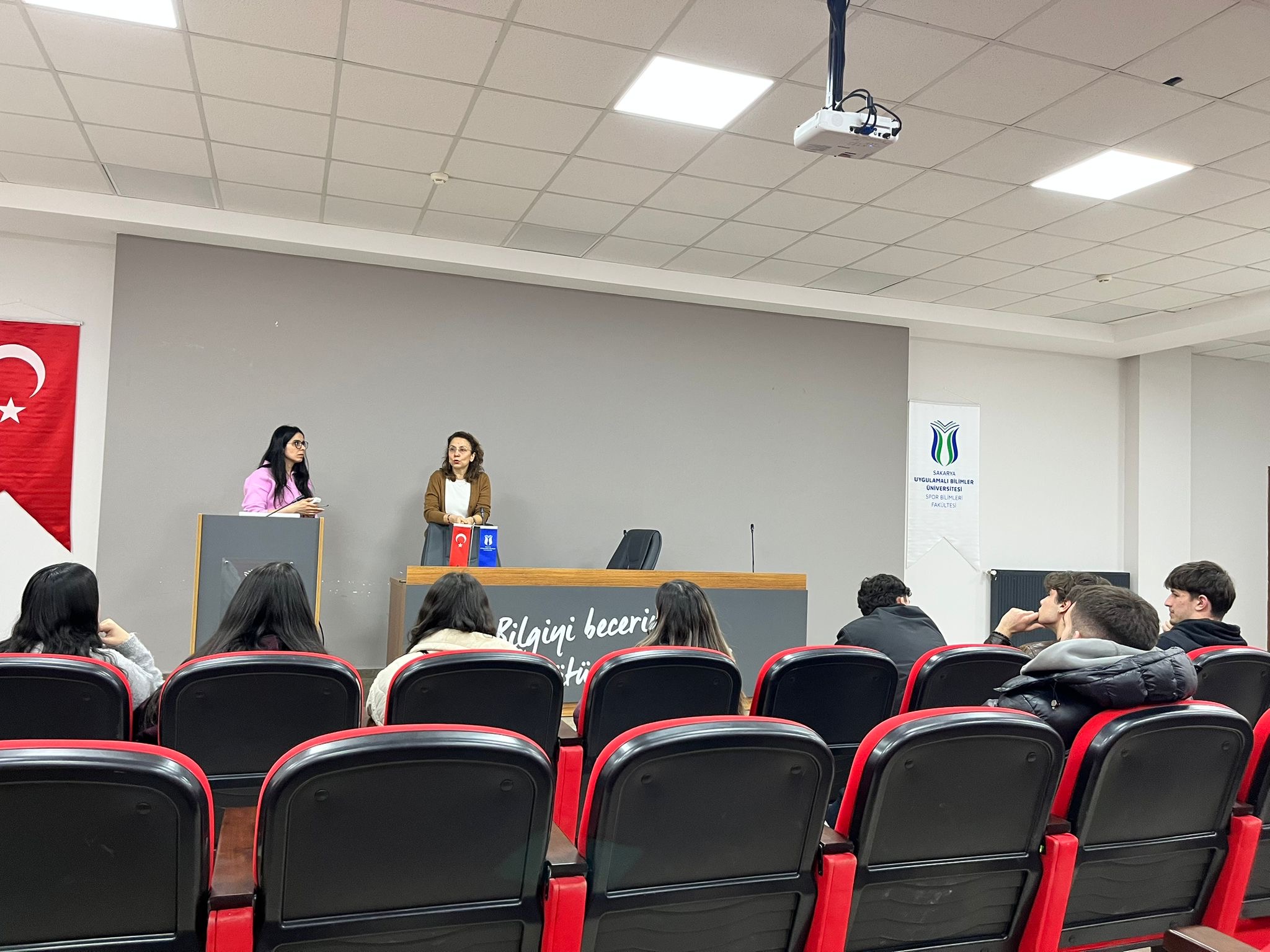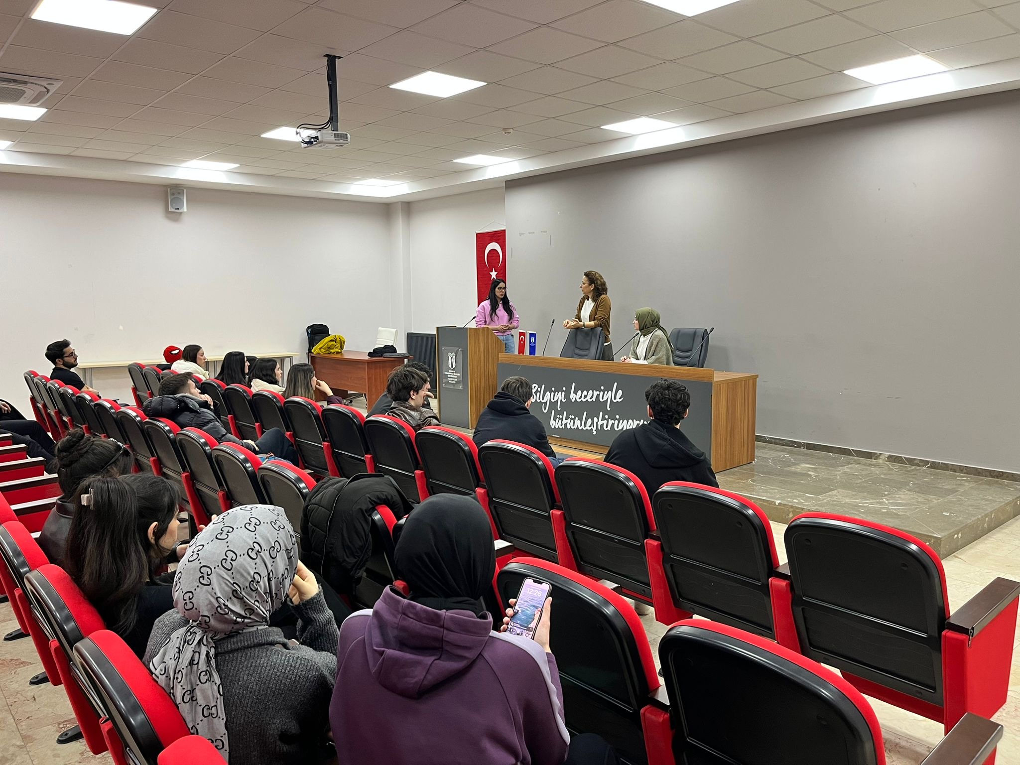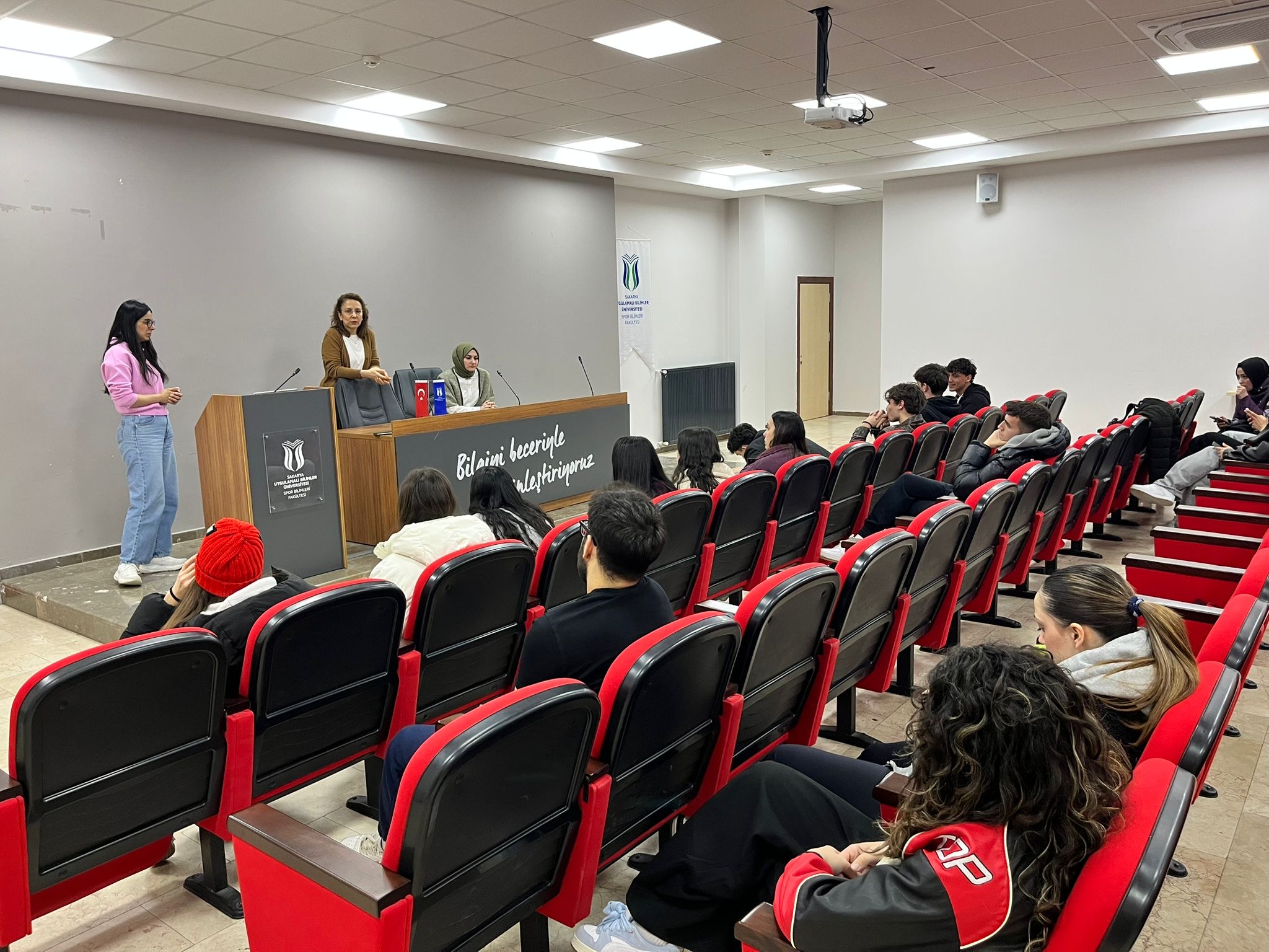 Dr. Merve Nur Yaşar, Dr. İpek Eroğlu Kolayiş ve Melike Eroğlu tarafından, Spor Bilimleri Fakültesi Antrenörlük Eğitimi Bölümü 2. sınıf öğrencilerine yönelik akademik danışmanlık toplantısı 2025–2026 Bahar dönemi kapsamında 9 Mart 2026 tarihinde fakülte toplantı salonunda gerçekleştirildi. Toplantıda öğrencilere staj ve işletmede mesleki eğitim süreçleri hakkında bilgilendirme yapılırken, Erasmus+ programı kapsamında sunulan öğrenci değişim olanakları ve başvuru süreçleri hakkında da detaylı bilgiler paylaşıldı. Bunun yanı sıra üniversitenin web sitelerinin etkin kullanımı ve öğrenci bilgi sisteminin doğru ve verimli şekilde kullanılması konularında öğrenciler bilgilendirildi. Öğrencilerin kulüp çalışmaları ve sosyal faaliyetlere katılımının kişisel ve mesleki gelişimlerine sağlayacağı katkılara dikkat çekilirken, akademik iletişimde e-posta kullanımının önemi ve doğru kullanımına ilişkin hatırlatmalar da yapıldı. Toplantının “istek ve öneriler” bölümünde öğrenciler görüş ve düşüncelerini paylaşma fırsatı buldu. Öğrencilerin sorularının yanıtlanması ve karşılıklı görüş alışverişinin ardından toplantı sona erdi.
